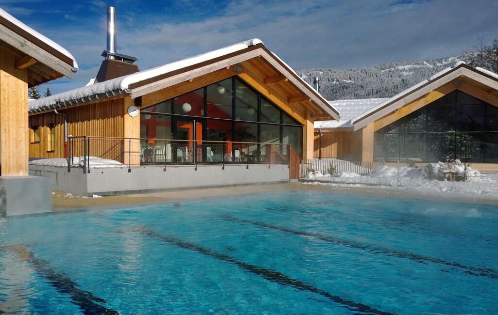 A leisure base includes the swimming pool with wellness areas, beach volleyball court, a sports hall, tennis courts, skate park, basketball court, health course, acrobatic forest course.