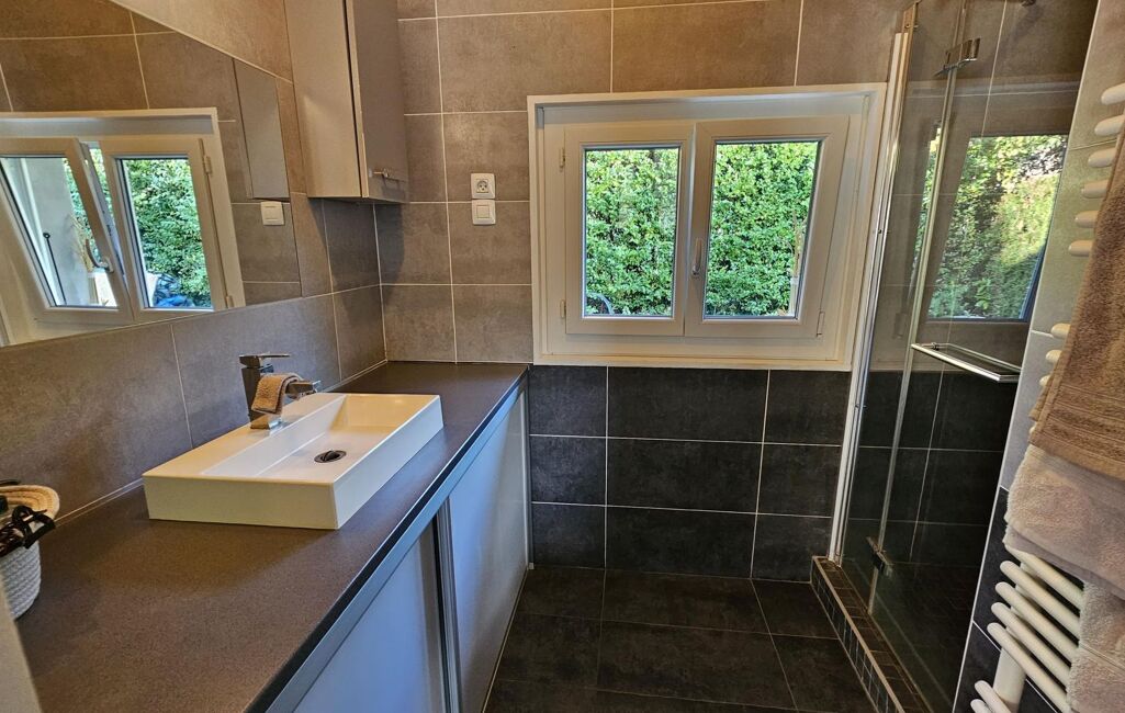 Quiet in a residential setting, near the village, the lake and the harbor, very neat villa including a beautiful living room with fireplace and a fully equipped kitchen, 2 bedrooms, dressing room, mezzanine, separate toilet and showerroom. Fenced land with sunny terrace. Air conditioning + convectors.